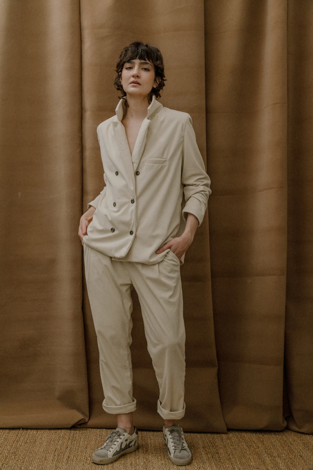 Sin entalle ni pinzas, para que quede cuadrado y suelto.