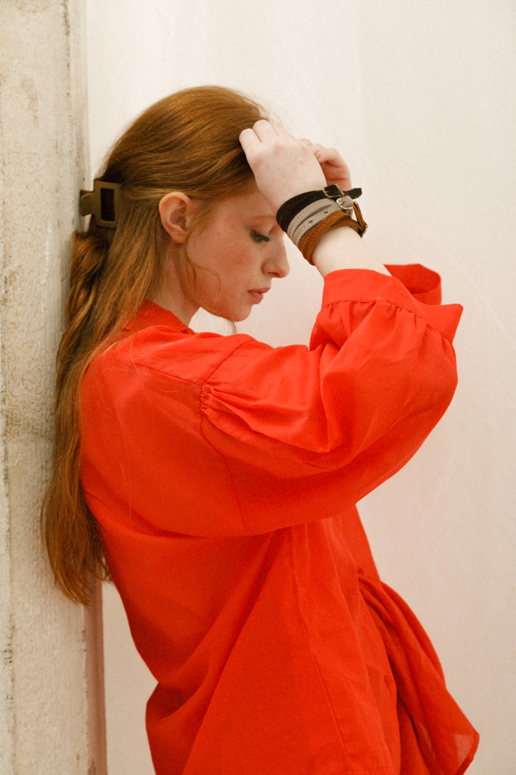 El diseño retoma el espíritu de la Camisa Iguazú, con un frunce en la sisa caída que aporta volumen y movimiento. A esto se suma una manga 3/4 amplia, cerrada sin botón, trabajada con un frunce marcado que la vuelve protagonista y femenina.