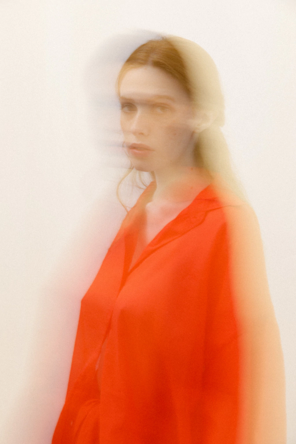 Rojo coral en voile de algodón 100%: suave, con caída ligera y un color lleno de carácter.