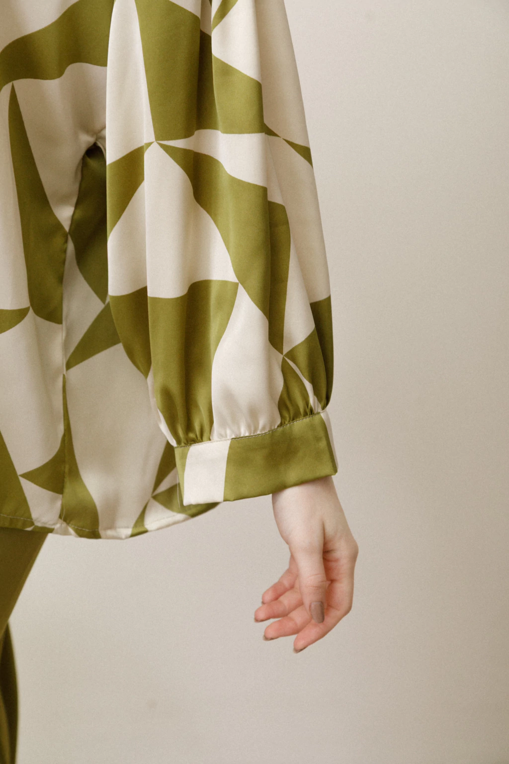 El diseño retoma el espíritu de la Camisa Iguazú, con un frunce en la sisa caída que aporta volumen y movimiento. A esto se suma una manga 3/4 amplia, cerrada sin botón, trabajada con un frunce marcado que la vuelve protagonista y femenina.